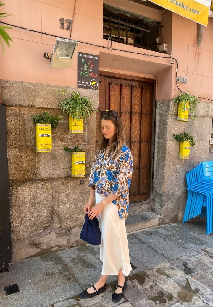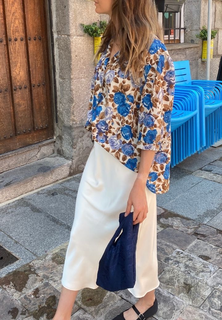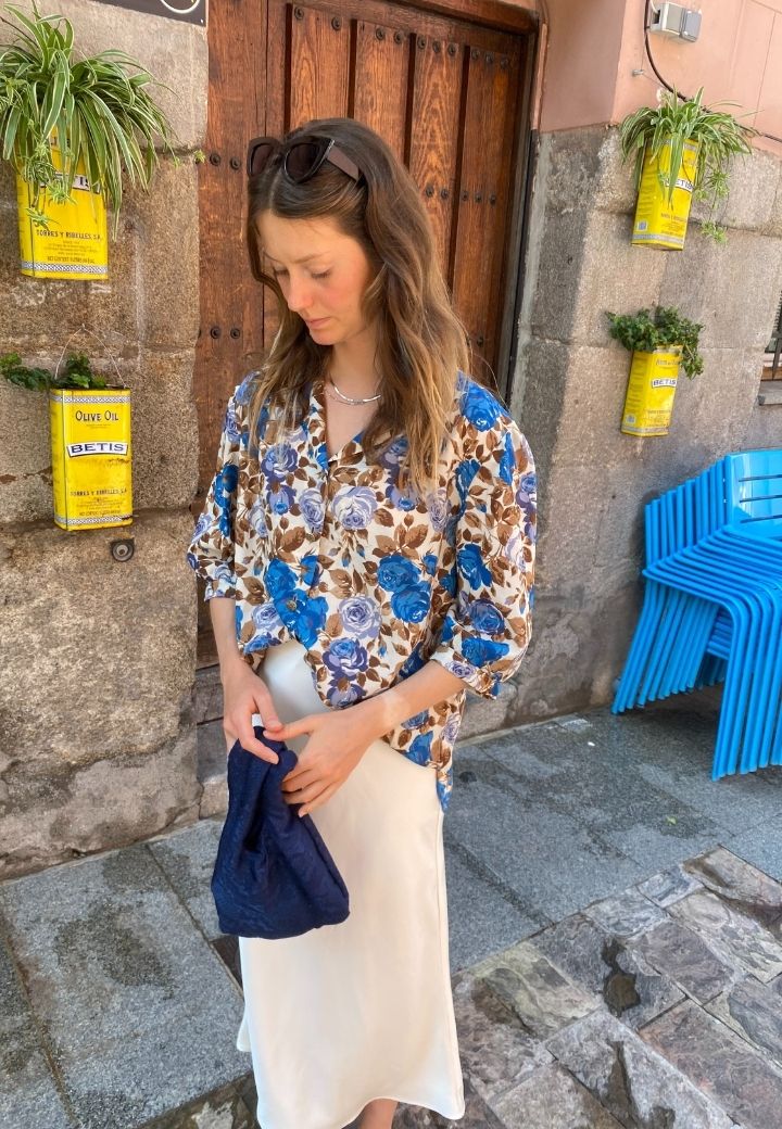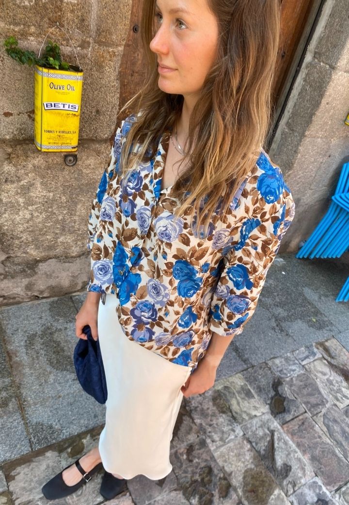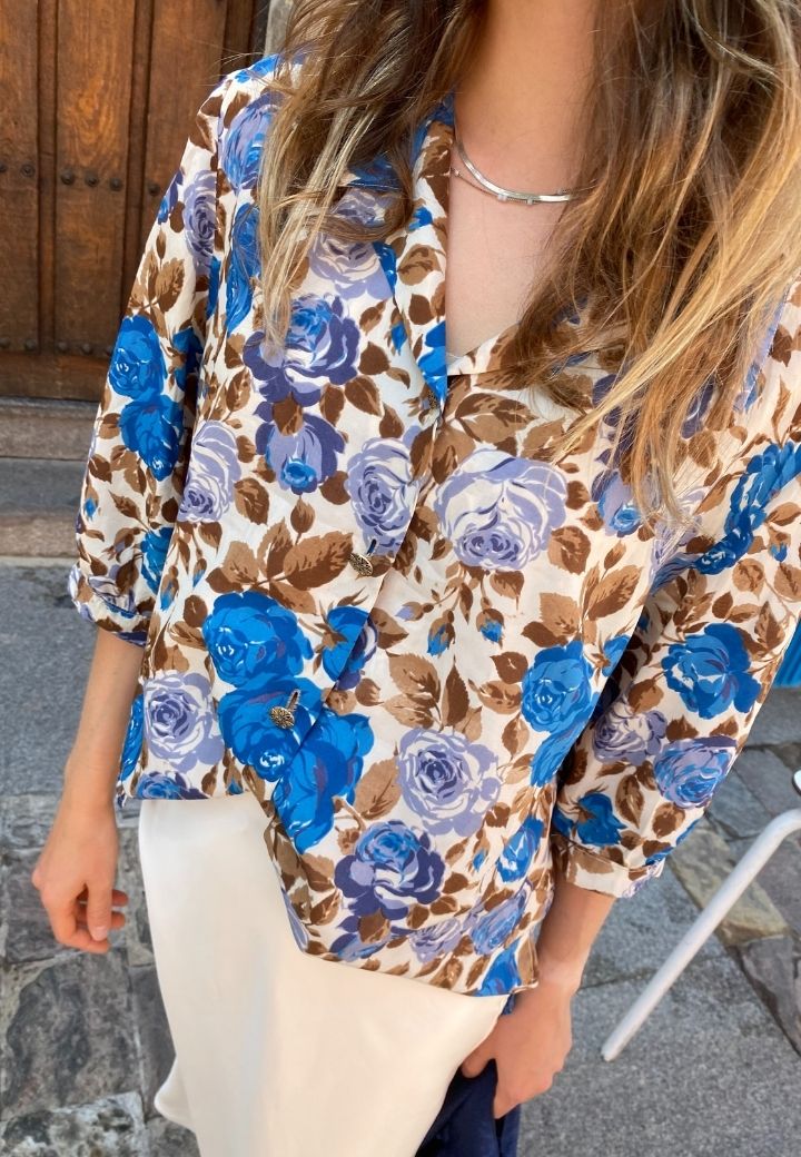 Camisa con estampado de flores vintage, una prenda clásica con hombreras y de gran calidad.